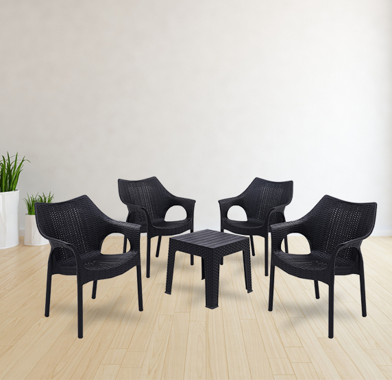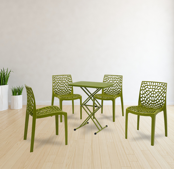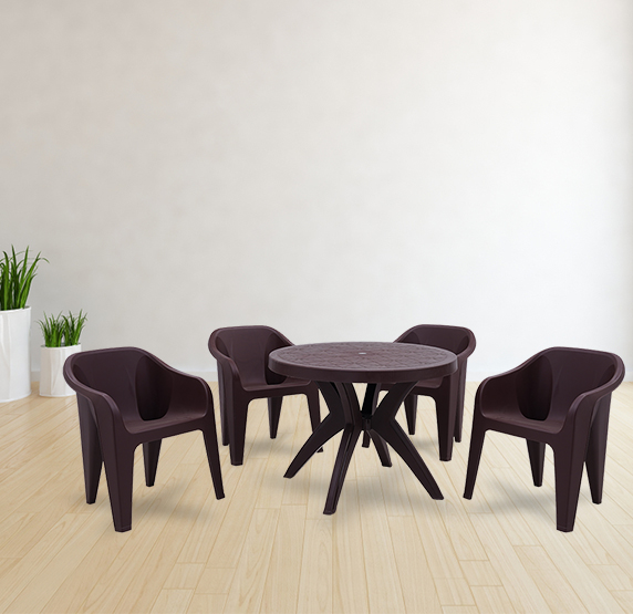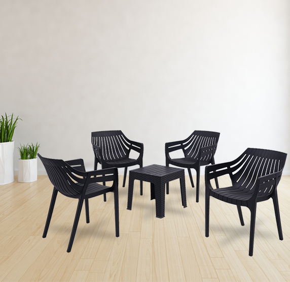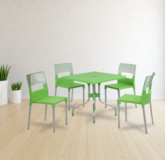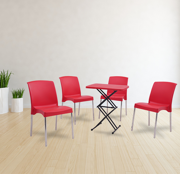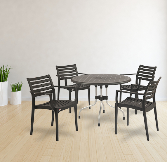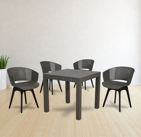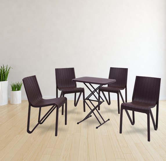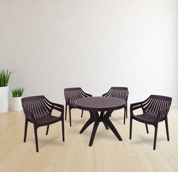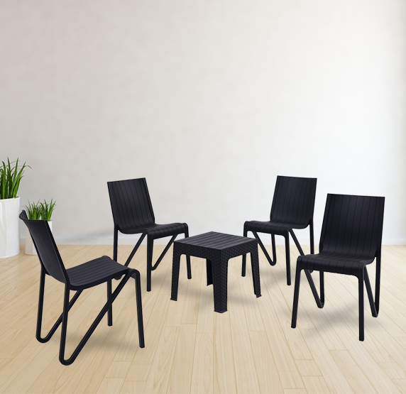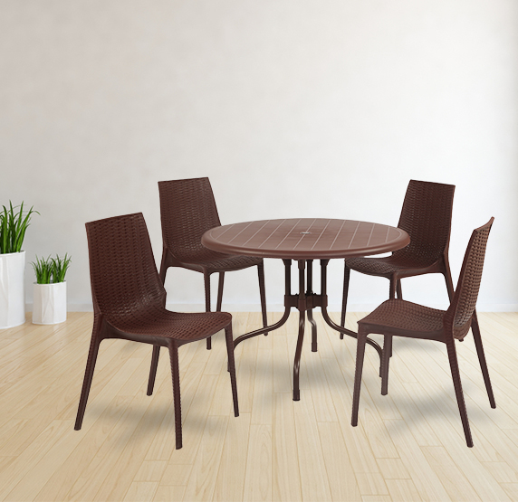 The 4 seater dining table and chair set from Supreme is perfect for smaller spaces or intimate dining settings. This plastic dining table with chairs offers flexibility for indoor and outdoor use, including kitchens, dining rooms, and garden terraces. The 4 seater dining set combines functionality with a sleek design, providing a practical and elegant solution for your dining needs.