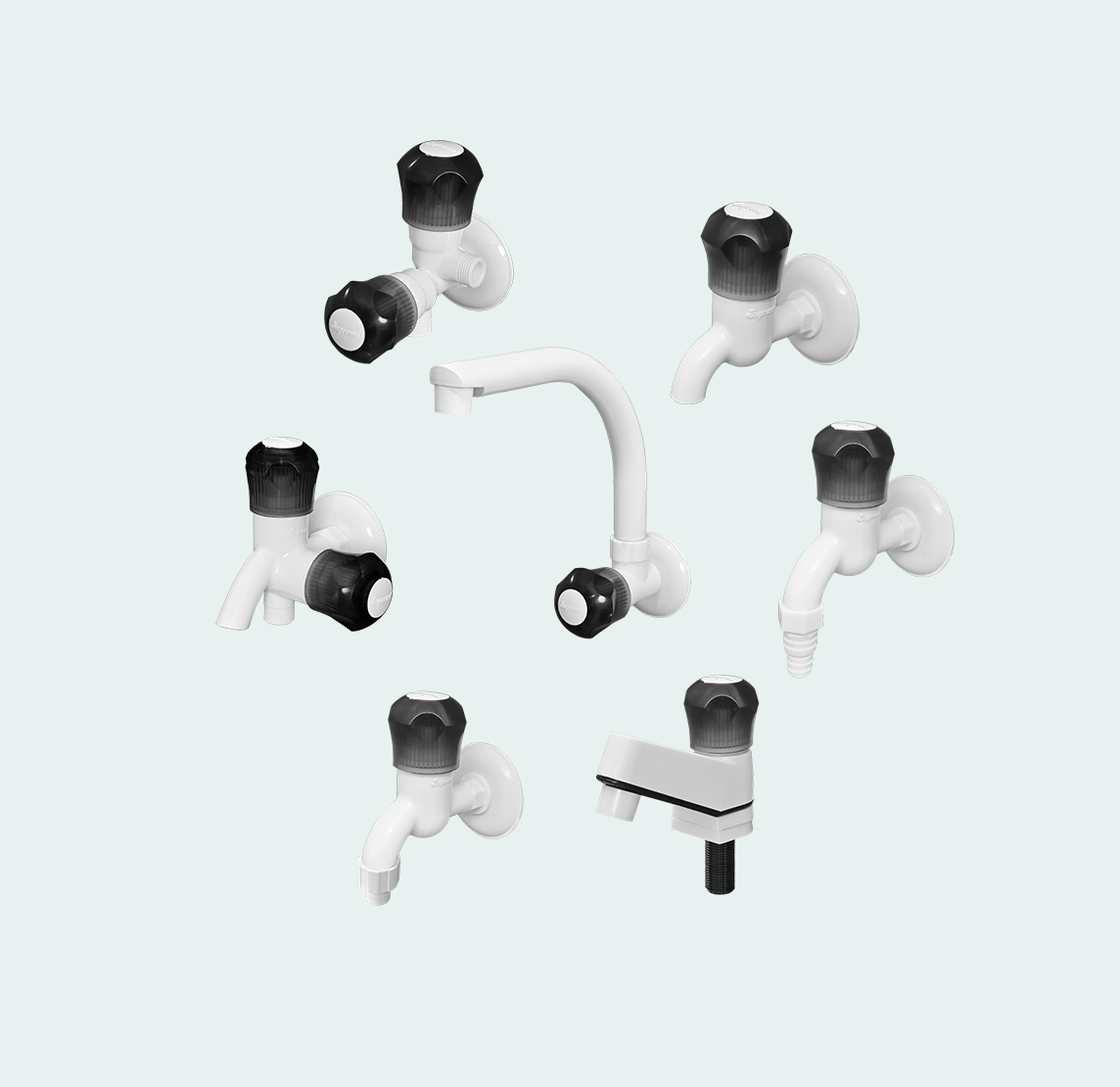 Plastic water taps – smooth operation, reliable flow control, and long-lasting finish.