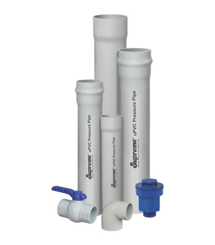 Supreme’s UPVC pressure pipes for agriculture are lightweight, easy to install, and highly durable. Designed for potable water supply, irrigation, and industrial applications, these pipes are available in both solvent weld and elastomeric rubber joint systems. They are ideal for irrigation pipes and fittings in agricultural settings, offering high resistance to chemicals and environmental stress. With excellent hydraulic properties, our UPVC pressure pipes ensure smooth water flow, reducing pumping costs and improving irrigation efficiency. Farmers and irrigation engineers value their cost-effectiveness, reliable jointing system, and long service life, making them a preferred choice in both domestic and export markets.