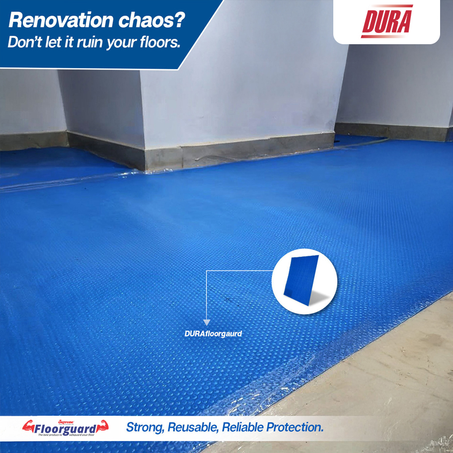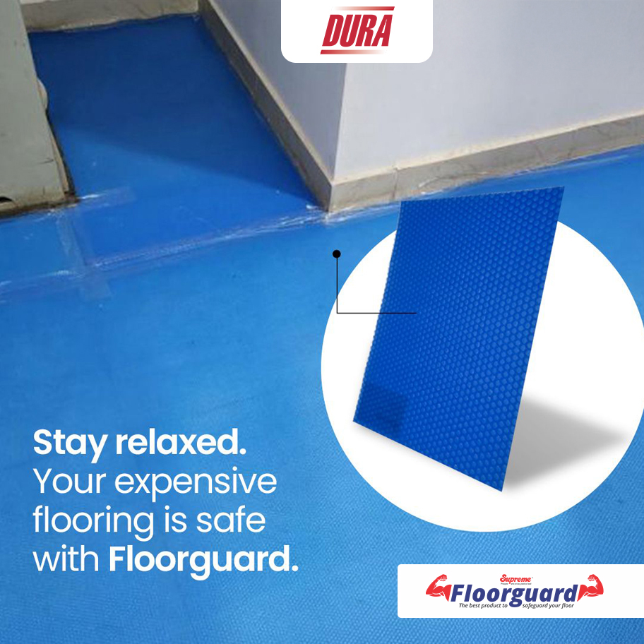DURAfloorguard is a specialised protective sheet made from high-density, closed-cell polymers, engineered to shield finished flooring during project execution. Its robust compression resistance and cushioned internal structure help distribute heavy loads without transferring impact to the underlying surface. Suitable for marble, granite, tile, and other premium finishes, it forms a temporary yet dependable barrier against stains, abrasion, dragging marks, and accidental scuffs. The built-in bubble matrix enhances shock absorption while ensuring the sheet remains flexible and easy to install. With its multi-cycle usability and long-lasting structural integrity, DURAfloorguard delivers a sustainable, cost-efficient protection system for demanding job sites.