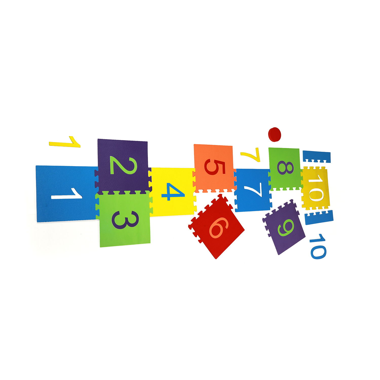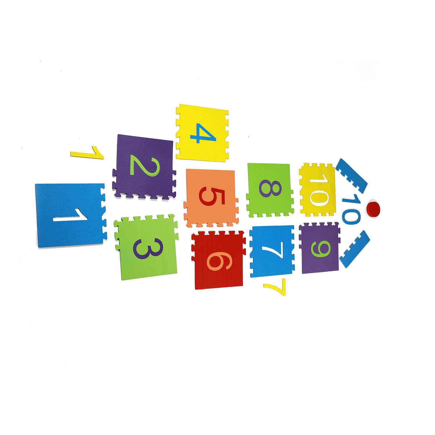 - Hopscotch Foam Puzzle Playmat for two or more players. Learn numbers while staying active!