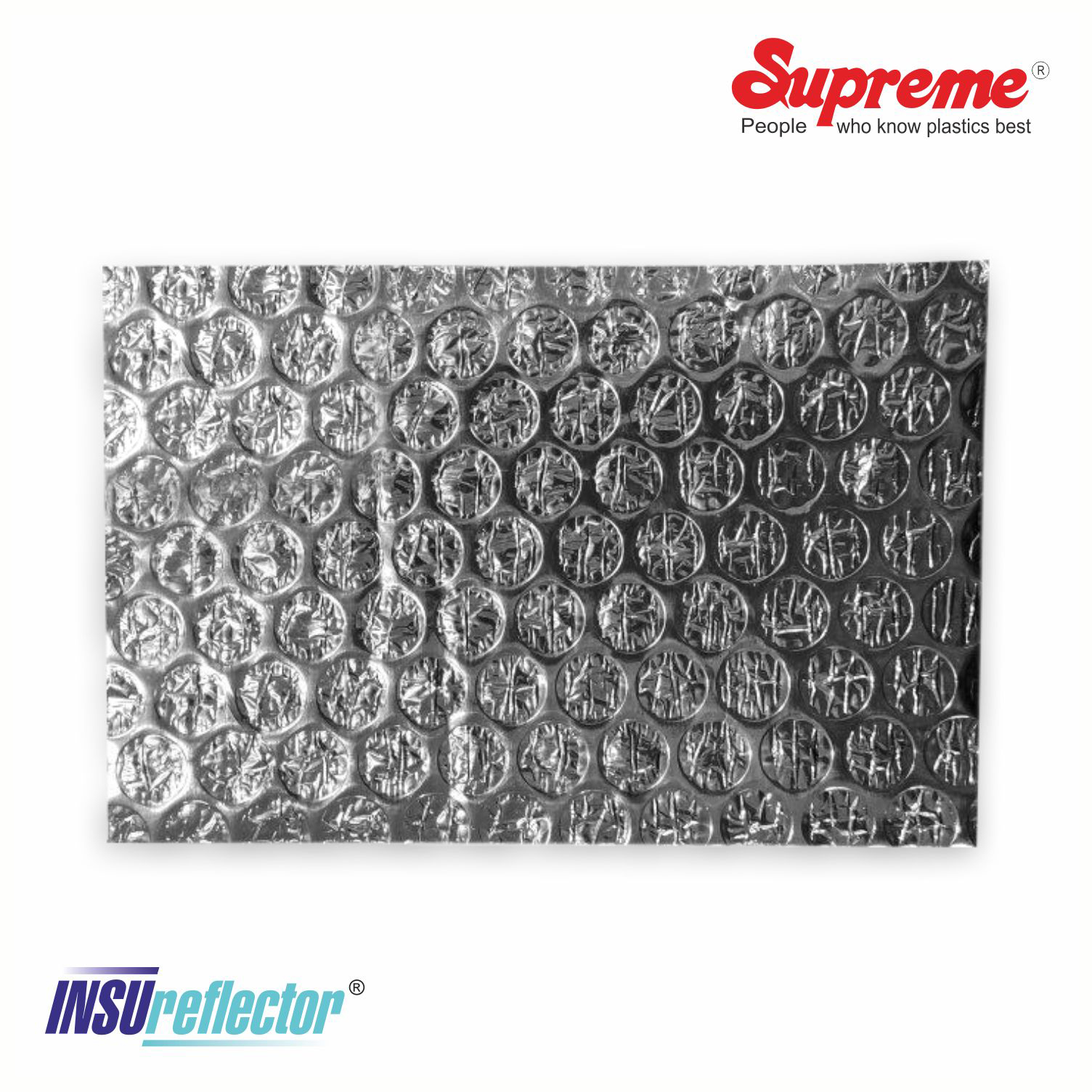 Reflective Insulation ‘INSUreflector' is a radiant heat reflective insulation material made of polyethylene Air Bubble Film (ABF) laminated with aluminium foil on one or both sides. It is a low e-reflective insulation material with a low mass-to-air ratio, which effectively blocks the radiant heat transfer. The bright surface of the aluminium foil, which encases the FR polyethylene air bubble material, reflects 96% to 99% infra-red radiation received by the surface of the heated slated roof. The placement of the radiant barrier is in a manner to provides an air space below the roofing sheets or between vertical cladding for its effective utilization.