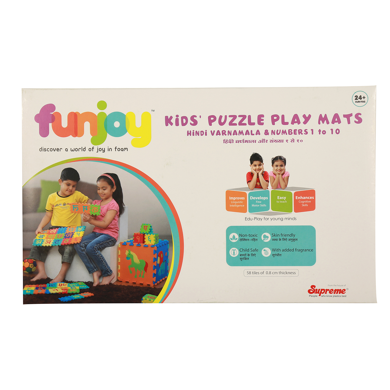 Funjoy toys are designed keeping the child’s health and development in mind. All are toys are made of Eva foam which nontoxic, skin friendly and phthalate free. Foam is a soft material and thus can be played indoors and outdoors. It helps with child’s brain development, hand and eye coordination.
