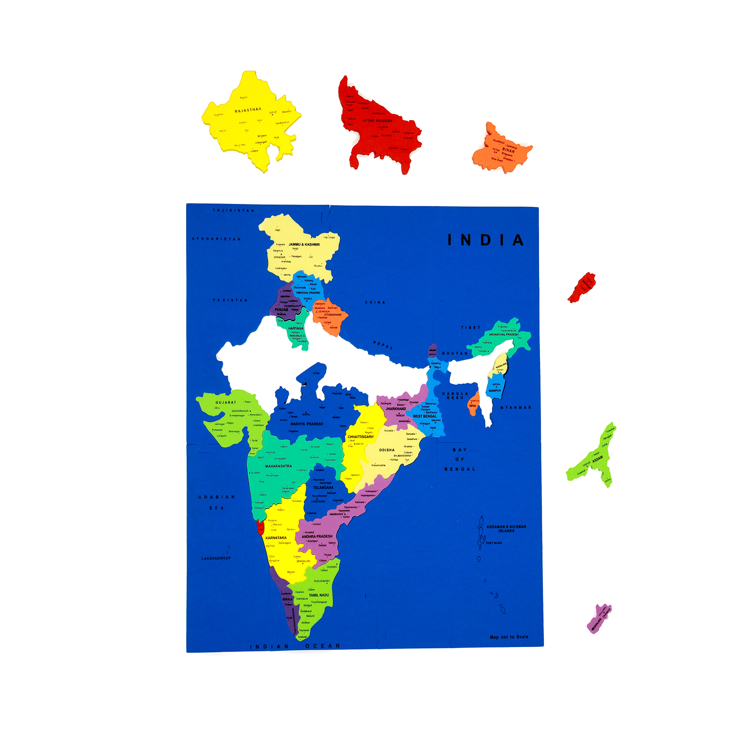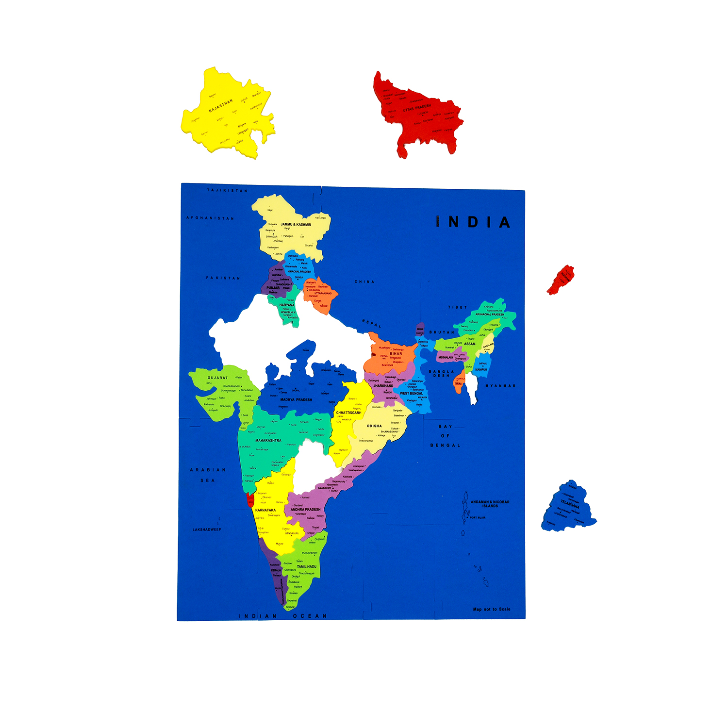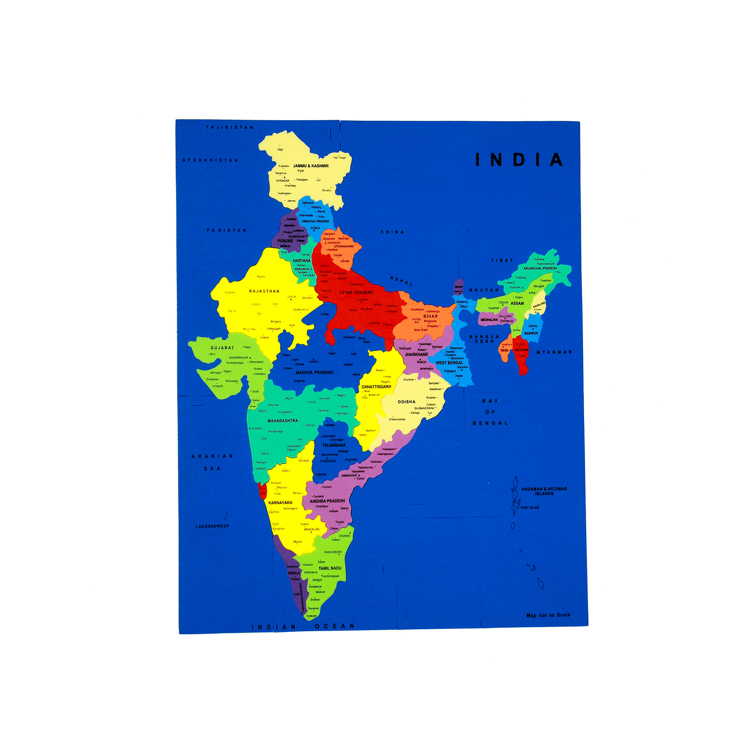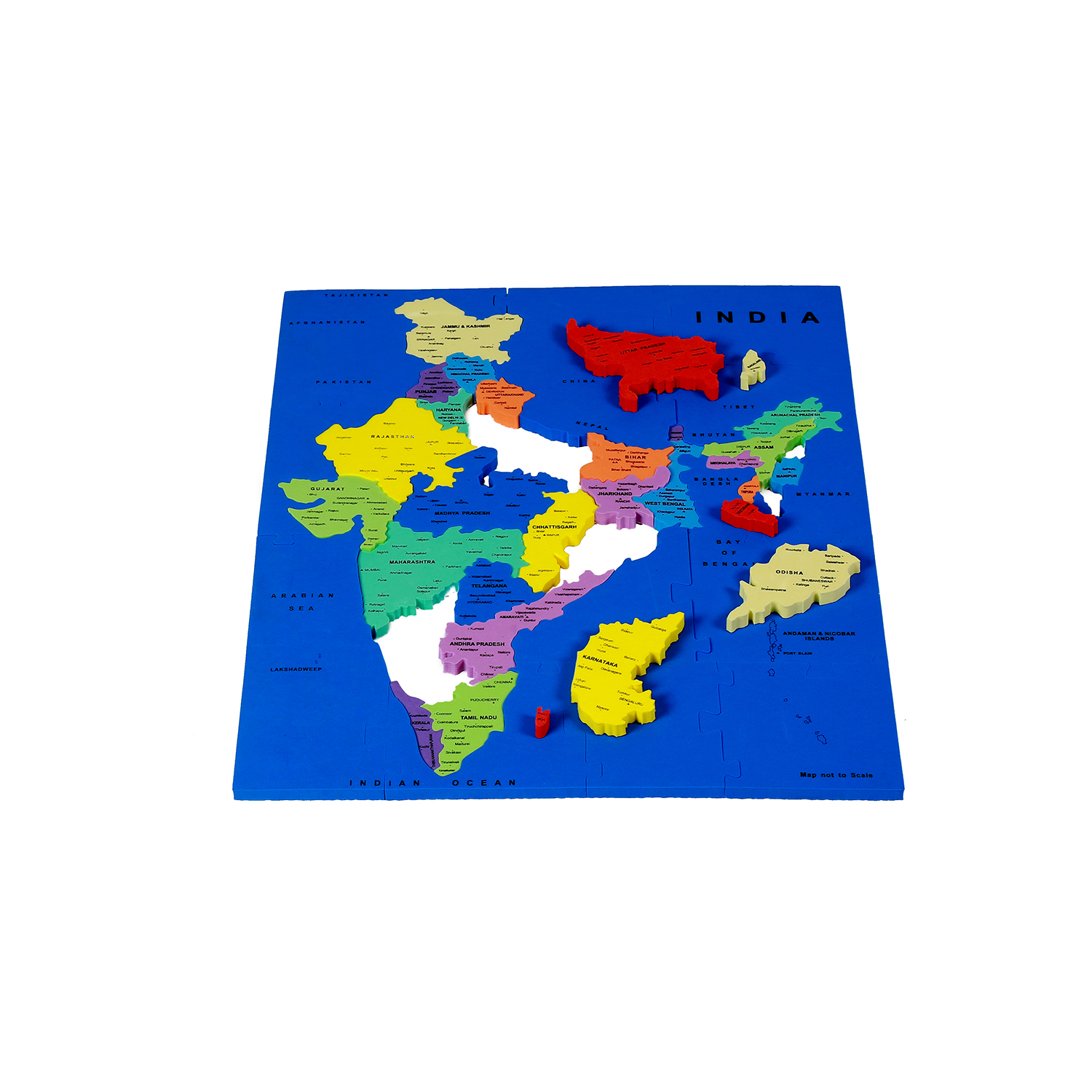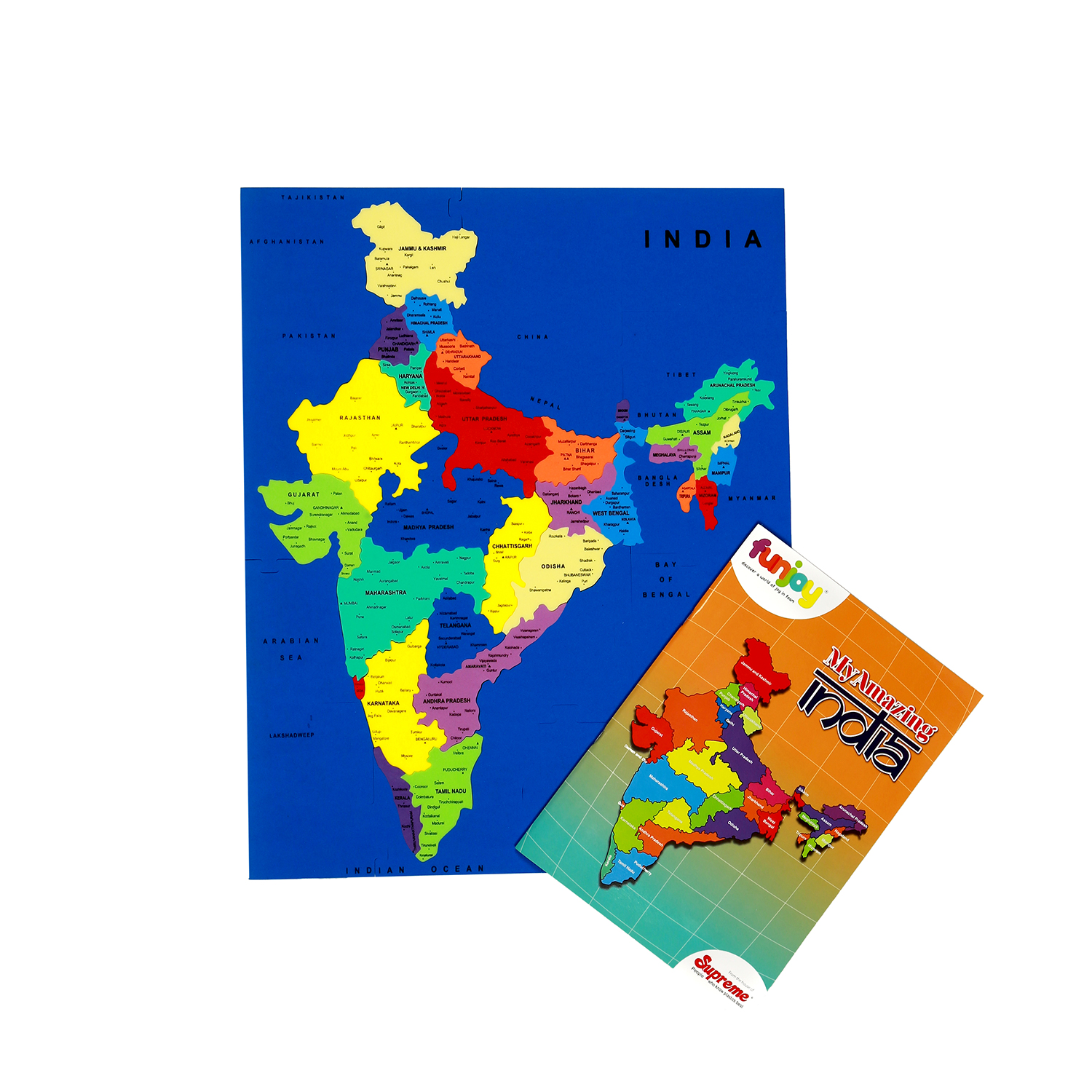 A unique, fun and exciting foam map puzzle toy to help children learn the States of India, Union Territories and their Capitals.