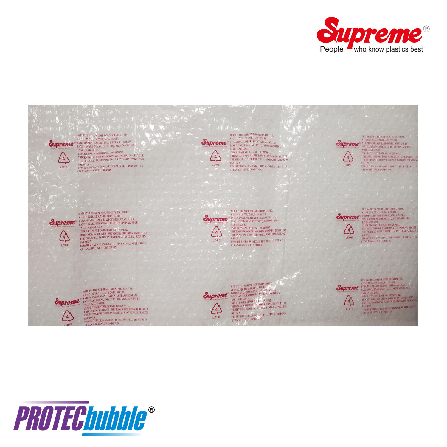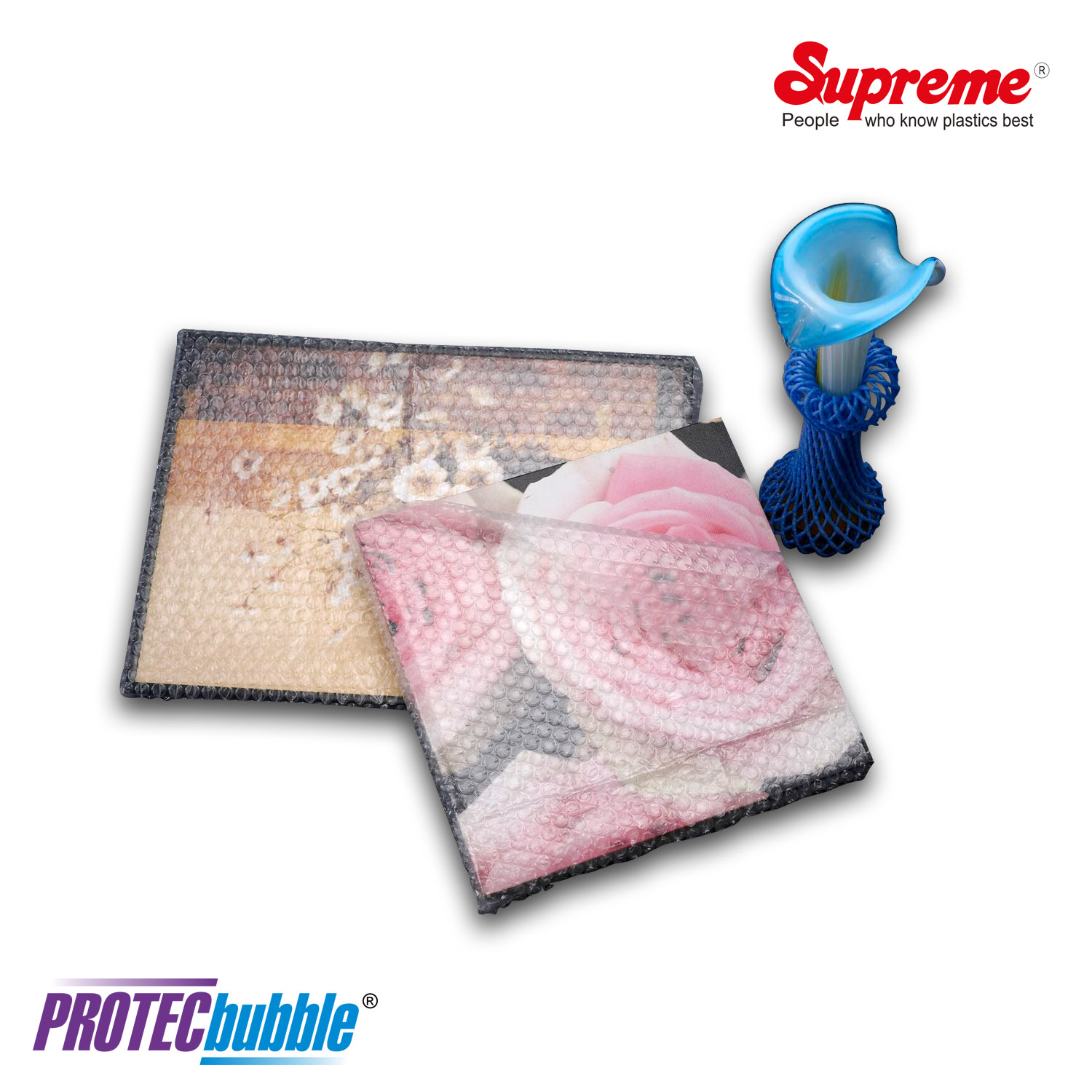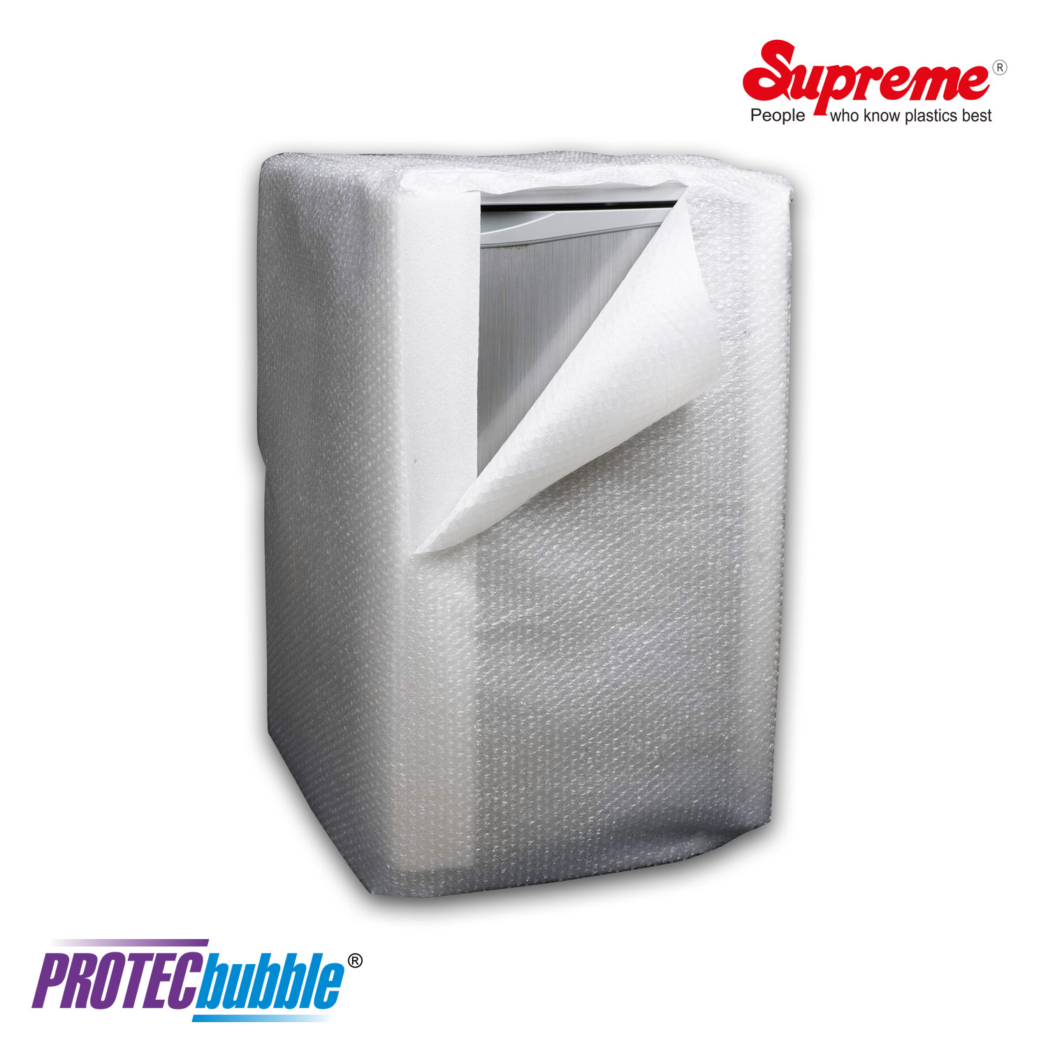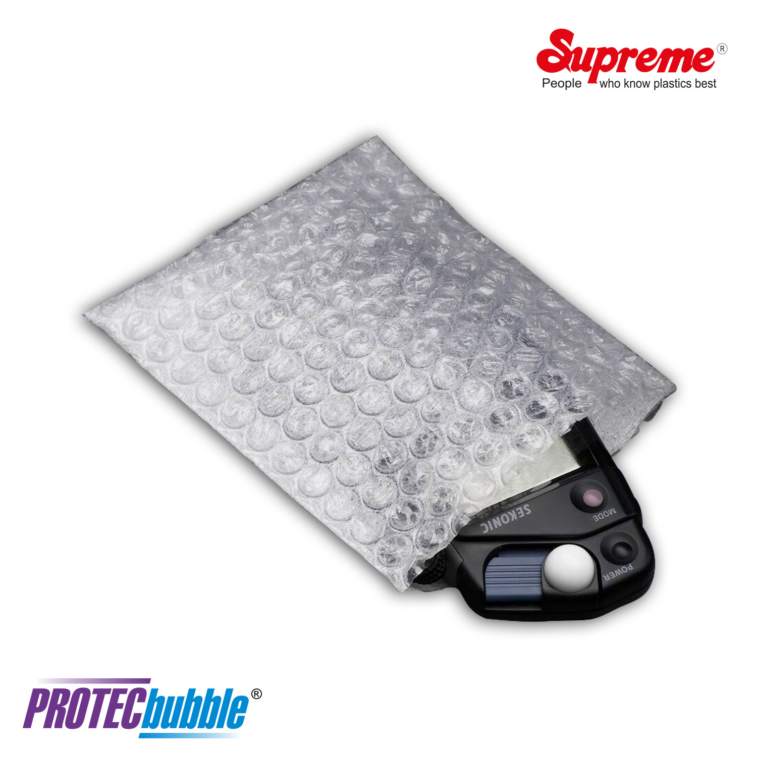 PROTECbubble is a flexible polymeric film comprising small air pockets. The symmetric Air bubble pattern ensures excellent cushioning as well as provides protection against transit damage for fragile goods. Available in various strengths & widths.